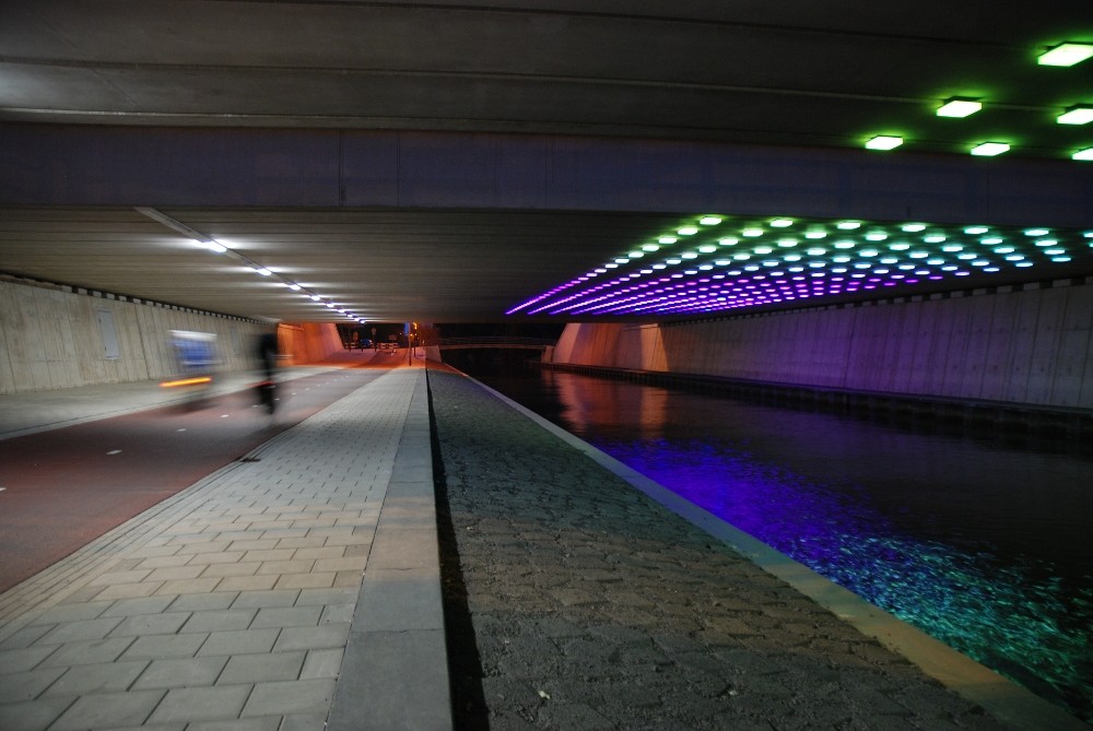 A2 bij Leidsche Rijn in gebruik genomen. De door veenenbos en bosch ontworpen onderdoorgang bevat een lichtkunstwerk dat voortdurend wisselt van patroon en kleur. Door de weerkaatsing op het water ontstaat een lichtspel onder het viaduct.